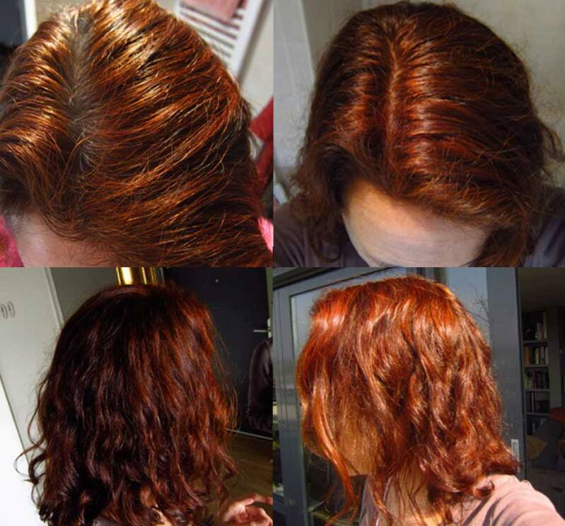De onderste twee foto's van Marit's haar, 1 week na de henna behandeling.