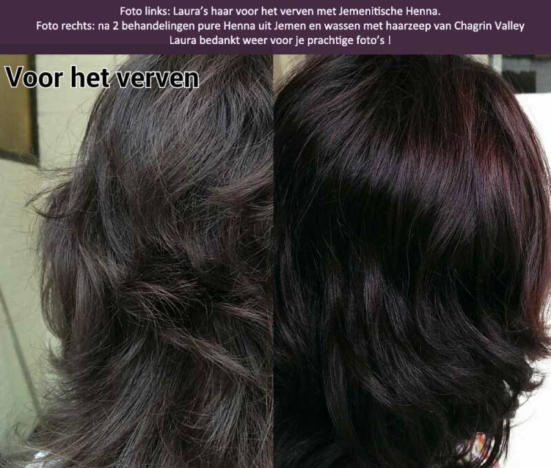 Laura benaderde ons omdat ze graag de Jemenitische henna wilde uitproberen. Ze had ons via Facebook gevonden. Ze heeft donkerbruin haar met hier en daar een grijze haar. Ze vroeg ons hoe lang ze de hennapasta in het haar zou laten zitten.